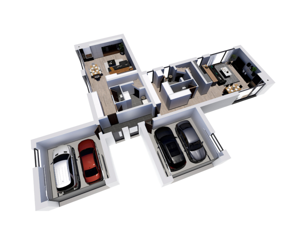 K bytu náleží prostorná garáž, venkovní parkovací stání a vjezdová brána na dálkové ovládání.