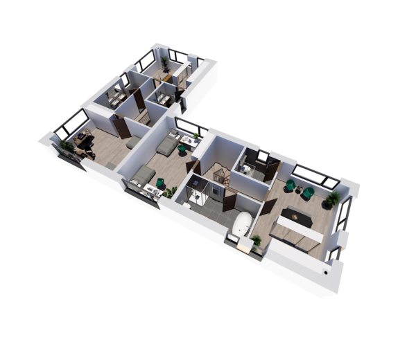 Vzdušný a prostorný dvoupodlažní BYT 1 disponuje nadstandardním vybavením a moderními technologiemi. Použité materiály a precizní provedení dává vyniknout čistotě, dokonalosti a eleganci prostoru. Dřevěné podlahy, klimatizace, předokenní žaluzie, podlahové vytápění, tepelné čerpadlo, fotovoltaika jsou částečným výčtem samozřejmostí, kterou daný byt disponuje, a které Vám přinesou pohodové bydlení v lokalitě obklopené přírodou.