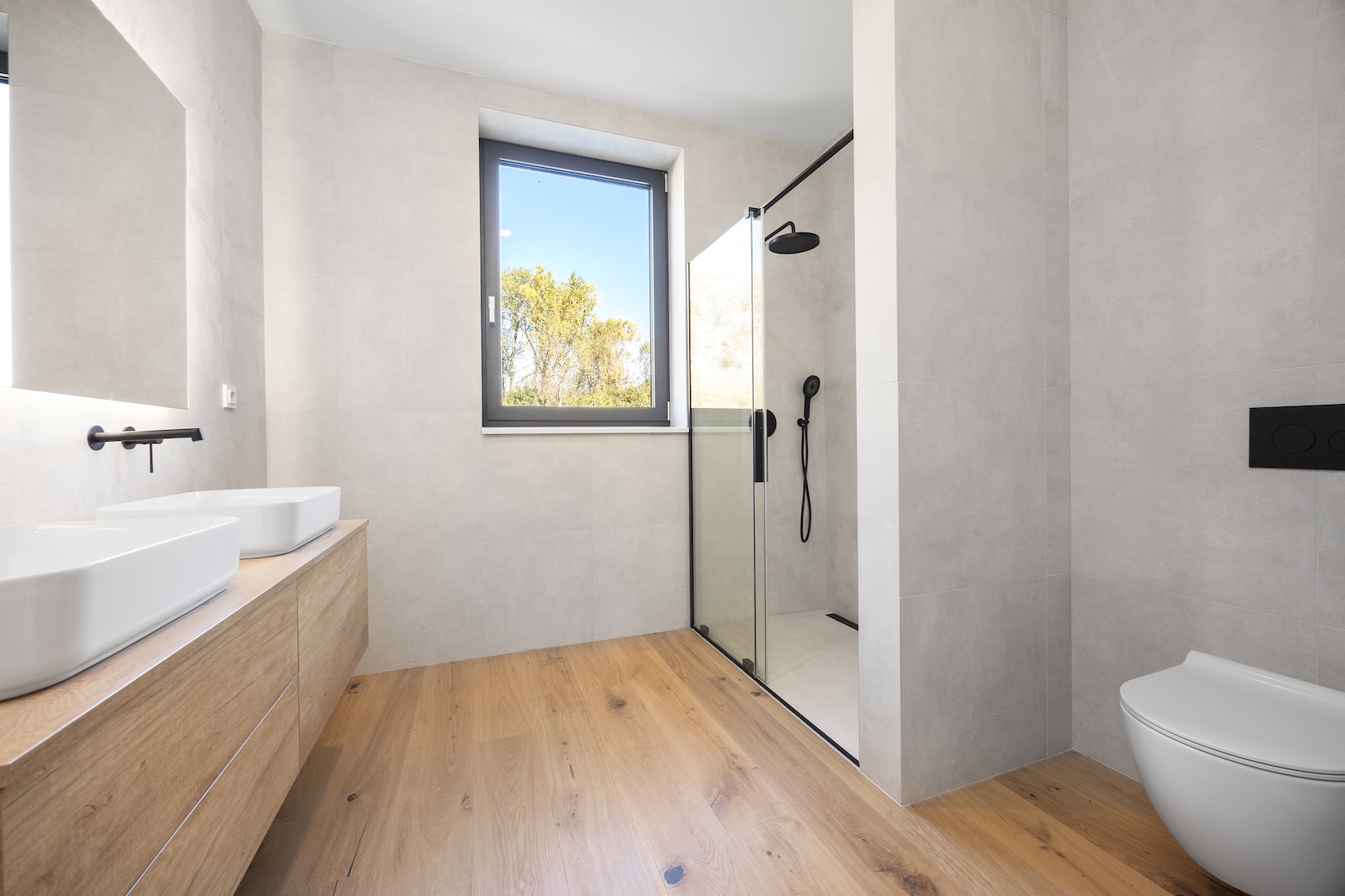 Dům je vybaven dřevěnými podlahami, klimatizací, podlahovým vytápěním, fotovoltaickou elektrárnou a tepelným čerpadlem.